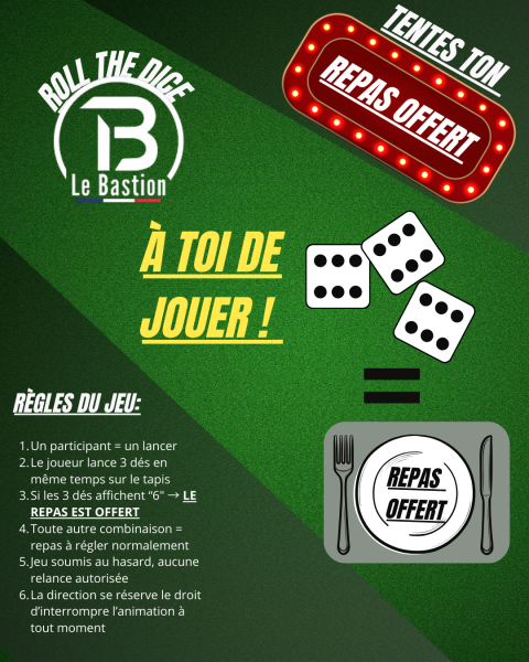 Tentes d'avoir ton repas offert en jetant les dès!