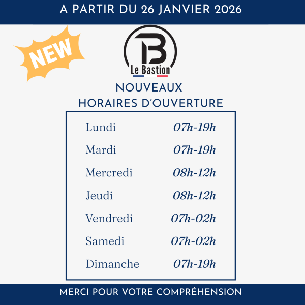 NOUVEAUX HORAIRES D’OUVERTURE DÈS LE 26 JANVIER 2026 !
